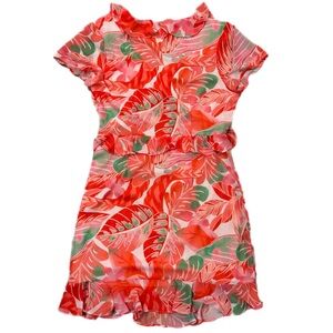 NWOT Gianni Bini Ruffle Tropical Front Cut-Out Dress – Size L, Pink Orange