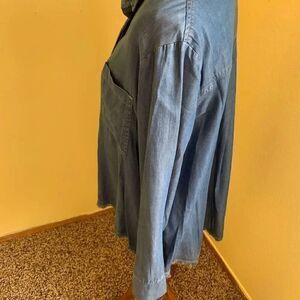 Brand new without tags, Long sleeve high low, front length 23” & back length is 28”, fringe on bottom, button down front with flap that hides the buttons. Armpit to armpit 24”. 100% Tercel
