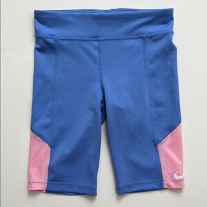 NWOT Girls Nike Dri-Fit Size Medium Blue & Pink Tight Fit Bike Shorts