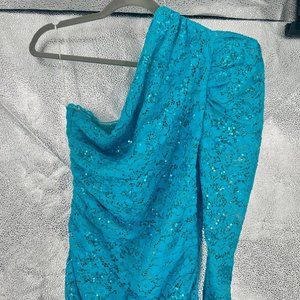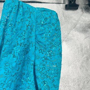 NWOT Giuseppe Di Morabito Blue Sequin Lace One Shoulder Dress
