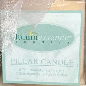 Included with the candle holder is a brand new UNSCENTED Luminessence wax pillar candle. It is peach colored with glitter. It perfectly fits in the candle holder and is very pretty.