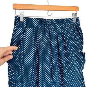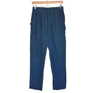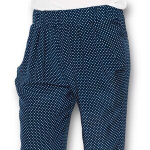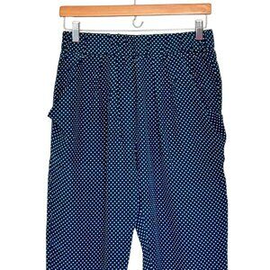 NWOT Gold Hawk Polkadot Pants Sz.M Navy White 100% Silk Tapered Elastic Waist