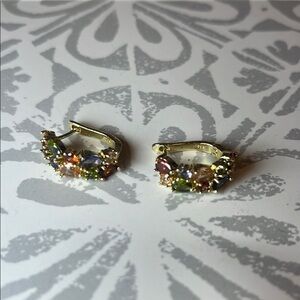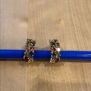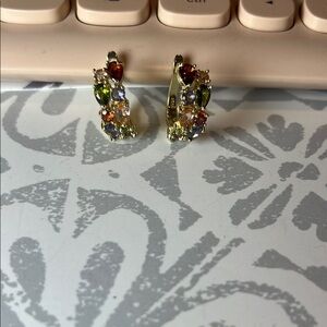 NWOT Gold and Red Rhinestone Half-Hoop Earrings