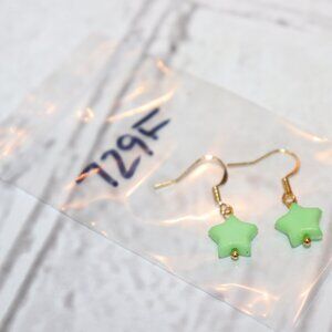 NWOT Gold and green star dangle earrings 1 1/8"