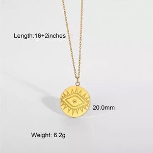 NWOT Gold Evil Eye Gold Plated , Round Pendant Adjustable Necklace