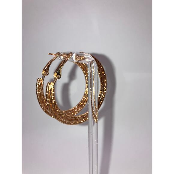 NWOT! Gold-Tone 2 Textured 3 Rows Classic Hinged Hoop 1.5 Inch Earrings!