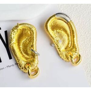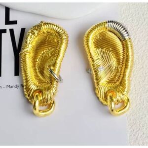 NWOT Goldtone Surrealist Chunky Ear Earrings 2.5in