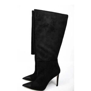 NWOT Good American Black Suede Slouchy Over the Knee Boots Thigh High Heel 8.5M