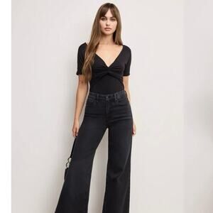 NWOT Good American Jersey Twist Front Bodysuit in Black SZ S