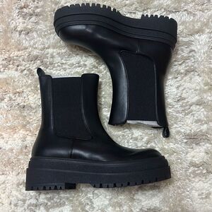 NWOT Good American Chelsea Platform Lug Sole Leather Boots Women’s Size 6.5.