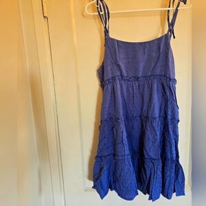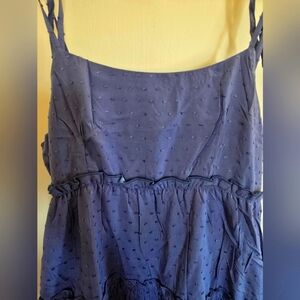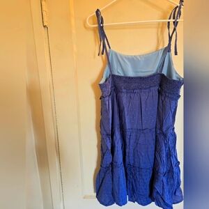 NWOT Gorgeous Blue Mini strap Dress with ruffles and patterned material! Size M