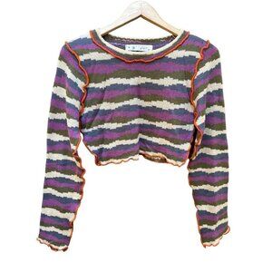 NWOT Grace Sweater Striped Knit Cropped Boho Hippie Women's Size Small