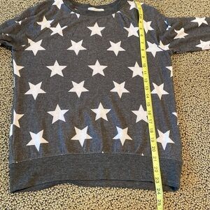 Super cute and soooo soft. Great for lounging around or wear with jeans. Stars on front and back.