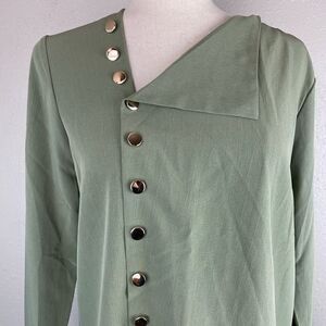 Stylish green button down shirt measuring 19 inches armpit armpit length flat and 25 inches in length for the shoulder to the hem.