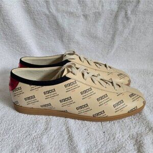 NWOT Gucci Falacer Invite Print Beige and Red Logo Sneakers