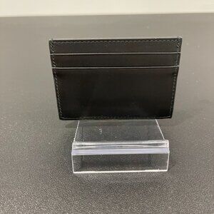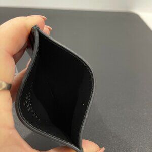 This card holder is black leather with an interlocking GG logo. It has four card slots and a single middle pocket. Please take the time to look at photos.