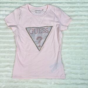 NWOT Guess Crystal Rhinestone Logo Top Women’s XS in Powder Pink