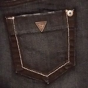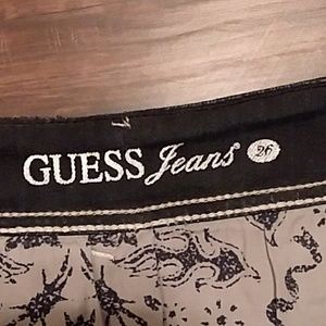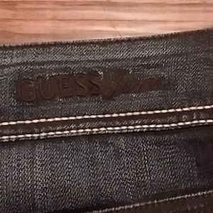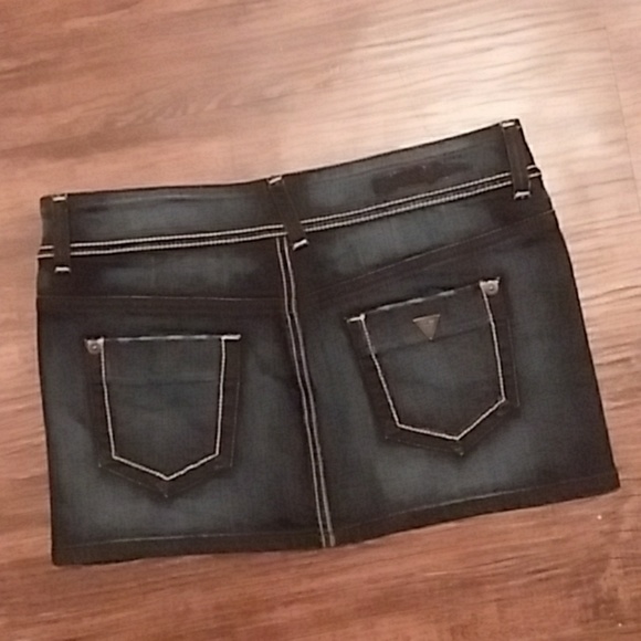 NWOT Guess denim mini skirt! Dark wash with some factory distressing! Gorgeous! About 10.5" long and waist laying flat is about 15". Size 26