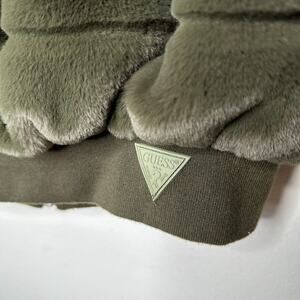 NWOT Guess Felicia Super Soft Olive Green Faux Fur Bomber Jacket Side Pockets XS