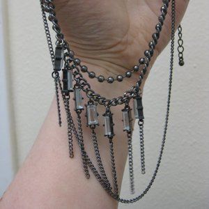 NWOT G by Guess rhinestone chain statement necklace. The metal is a silver hematite color. Brand new, never worn.