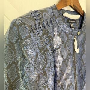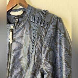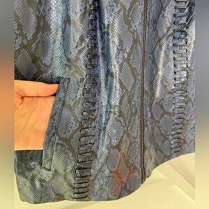 H By Halston Snake Print Faux Leather Jacket With Whipstitching Blue & Black Size 12