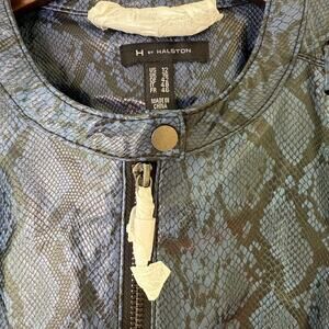 NWOT H By Halston Snake Print Faux Leather Jacket Blue & Black Size 12