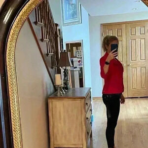 3/4 Sleeves in vibrant red color. Could fit a XS as well.