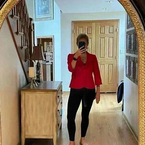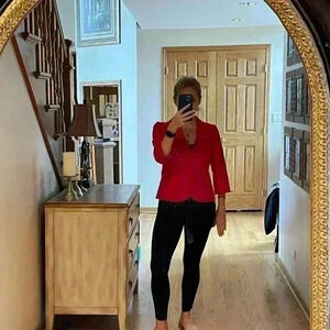 NWOT HALOGEN 3/4 Sleeve Red Ruffle Blazer Jacket Size Small P.