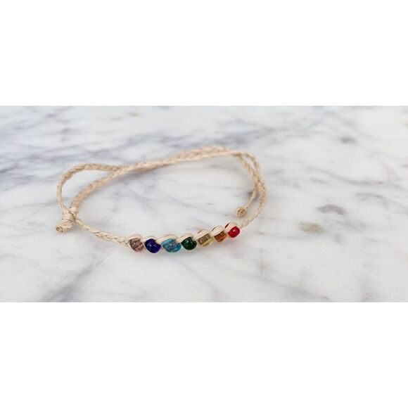 Gorgeous adjustable, braided hemp and rainbow beaded bracelet / anklet that has never been worn! Awesome to layer with and great for summer.
