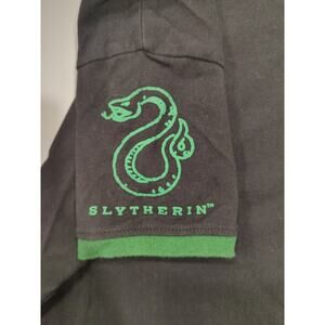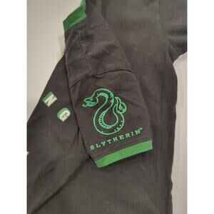 The product is a brand new, without tags (NWOT) XS Slytherin T-shirt featuring the Harry Potter franchise. This tee is inspired by the Wizarding World of Harry Potter, specifically showcasing the ambition, cunning, and pride associated with the Slytherin house. Perfect for fans of the fantasy genre and collectors of Harry Potter memorabilia, this T-shirt from Warner Bros. is a must-have for those who appreciate the magical world created by J.K. Rowling.