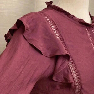 NWOT HAUTE MONDE Ruffle Trim Peasant Blouse. Size: L