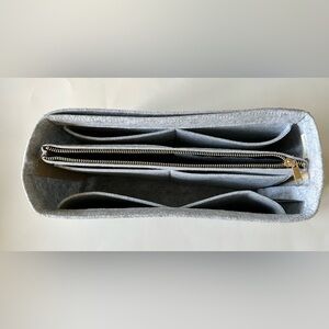 NWOT HEATHER GREY TOTE/PURSE SHAPER/ORGANIZER zipper middle, detachable Velcro, chain hook, pockets Le Pliage Organizer (3mm Felt, Detachable Pouch w/ Metal Zip)