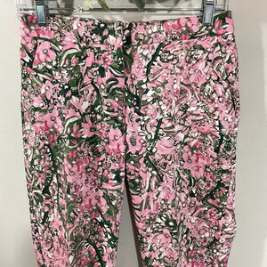NWOT H&M Ankle Length Pink Green Floral Dress Pant in size 4. Excellent new condition, zipper, button and hook and eye closure, two front and one back pocket, regular waist, ankle slit. Please see photos for approximate measurements and details. Item may show a difference in color based upon photography and perception. Photos are part of the description, as everyone’s level of condition may vary. From smoke free and pet free home. All packages are shipped the same or next business day.