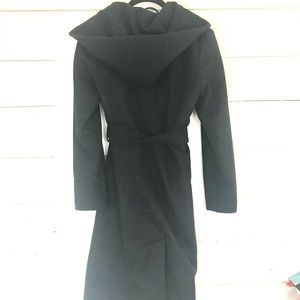 NWOT H&M Black Wool Blend Wrap Coat with big Hood