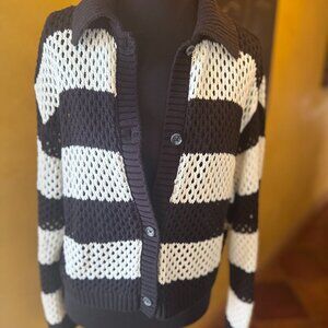 NWOT! H&M Divided Black & White Striped Open Knit Button-Up Sweater – Size Small