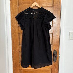 NWOT! H&M Flutter Sleeve Dress with Eyelet Embroidery in Black - S