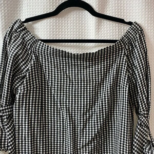 NWOT H&M Gingham Off The Shoulder Tie Sleeve Top