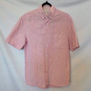 NWOT H&M L.O.G.G. 100% cotton pink and white short sleeve button down shirt with front pocket. Size Men's Small.