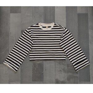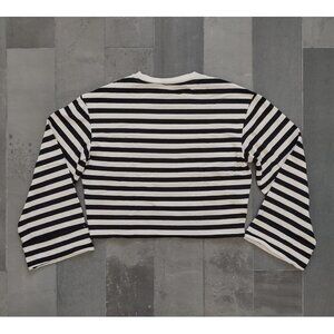 New without tags. Short, boxy-style top in soft cotton jersey with a round, rib-trimmed neckline, dropped shoulders and long, wide sleeves with sewn-in turn-ups. 100% cotton. Size small.