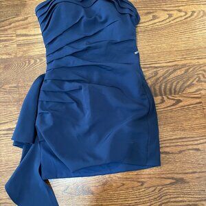 Perfect HOCO navy dress, KissProm Eldona | Navy Blue - Strapless Spandex Bodycon Homecoming Dress With Slit, size 4. NEVER WORN! The ribbon accidentally came off when it was tried on. It was bought 3 weeks ago. Great deal! back can be adjust. Built in pads