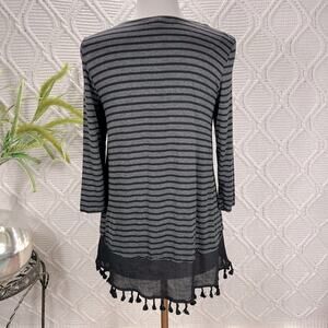 NWOT HONEYME | Gray & Black Striped Tasseled Fringed Tunic Top | Women's S