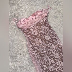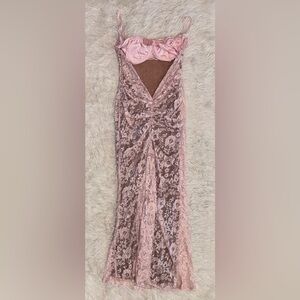 NWOT HOUSE OF CB Azzurra Rose Pink Lace Godet Gown Sz S