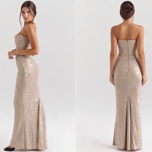 NWOT HOUSE OF CB Persephone Gold Chiffon Corset Maxi Dress Size S PLUS CUP