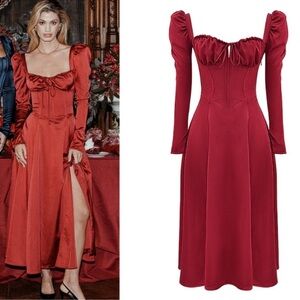 NWOT HOUSE OF CB 'Sebille' Ruby Corset Long Sleeves Midi Dress sz XS PLUS CUP