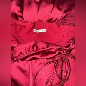 Steal the spotlight in this stunning midi dress. Defined by the lustrous ruby satin and pretty details, 'Sebille' is your glamorous go-to. The gathered bust, pretty puff sleeves and lace up back adds a touch of romance whilst the corsetry boning cinches the waist for a sculpting fit.