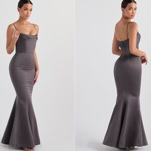 NWOT HOUSE OF CB 'Violette' Shadow Satin Maxi Dress Size XS REG CUP
