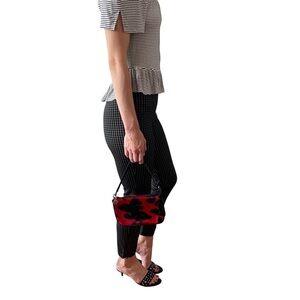 NWOT HUE Black & White Checked Stretch Crop Ankle Zip Legging Trouser Pant XS/S