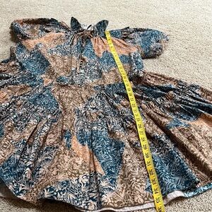NWOT! Hunter bell Merritt prairie patchwork ruffled dress. Front tie with keyhole , high ruffled neck, and shoulders, tiered and sold out . No pockets.