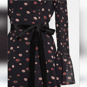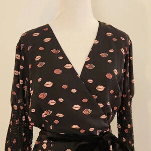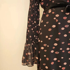 NWOT Hutch Truth From My Red Lips, feminine black dress with red lips in a sheer fabric. Size Extra Large