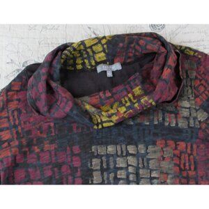 NWOT HabitaT Multi Color Lagenlook 100% Cotton Cowl Neck print asymmetric Top S